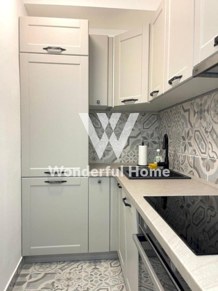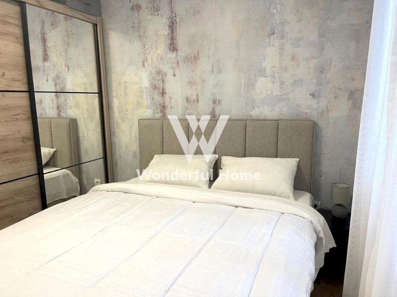 We offer a modern one-bedroom apartment for rent, with a total area of 45 square meters, located near the "Tabu" cafe. The interior features contemporary renovations and is adorned in minimalist light gray tones. The bright kitchen is equipped with all necessary appliances and has access to a cozy living room with a soft sofa.