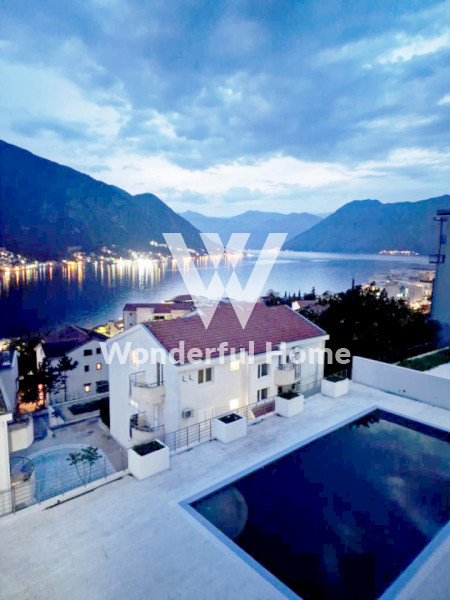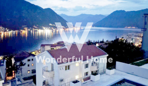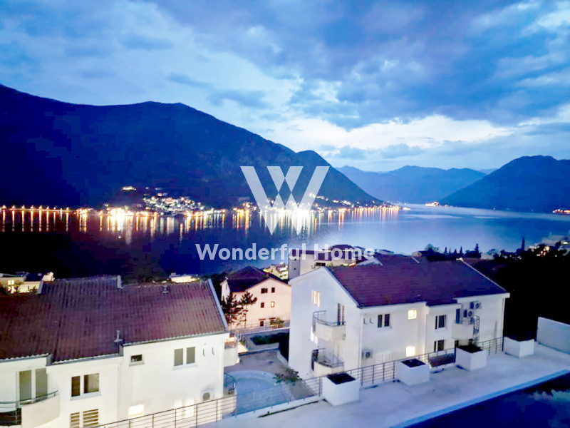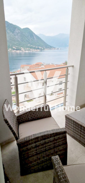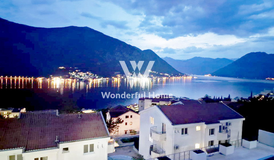 La distribución consta de una habitación, una sala de estar combinada con una cocina, un baño y una terraza con una vista impresionante de la Bahía de Kotor.